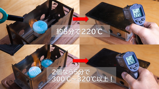 AWESOME uses solid fuel , so if you use two of them, the temperature will exceed 300°C. In charcoal grilling, the temperature exceeds 400°C, so it may burn quickly, but once it reaches a certain temperature, it will not continue to rise.