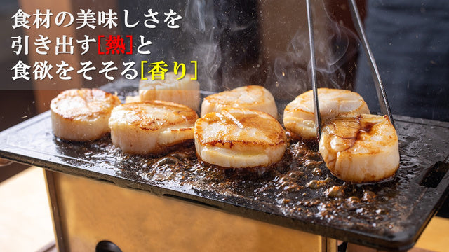 Compared to a thin iron plate, the heat is transmitted to the ingredients in a wide range, and the inside is deliciously baked.